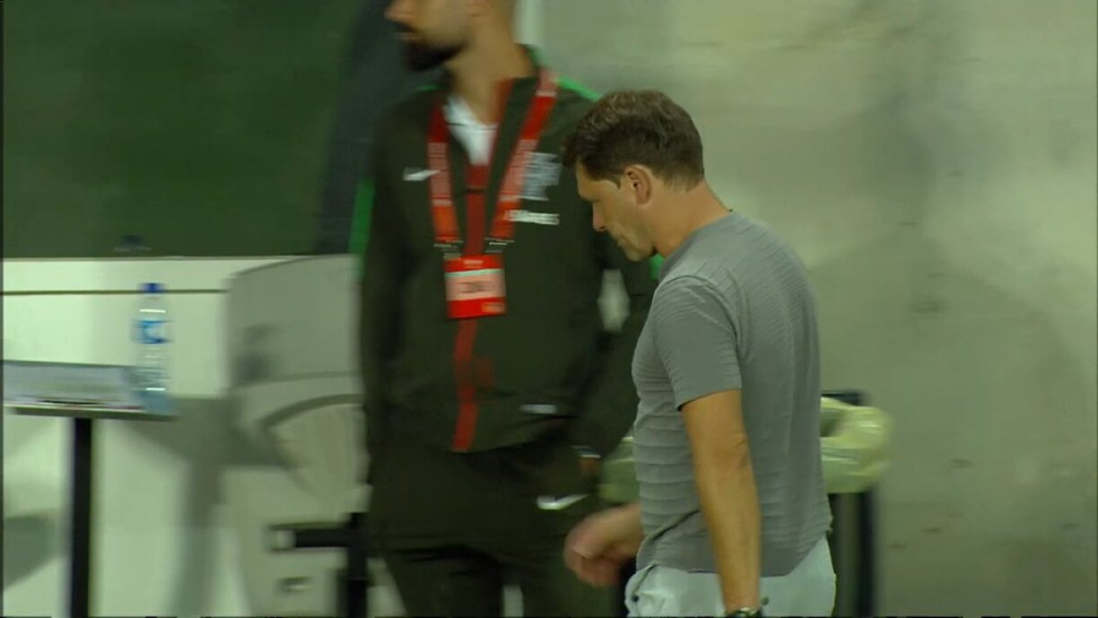 “Jo also ech wollt net fortlafen, mä de Jürgen Klopp hat mol eng Kéier gesot, mat 55 Joer muss een Owes méi oft opstoen, fir op d’Toilette ze goen, sou, mir Männer an deem Alter, ech sinn och bal an deem Alter, nach net grad, ech hunn der 54, do muss ee leider méi oft op d’Toilette goen. Also ech hat keng Toilette nieft der Bänk an dofir sinn ech schnell eragelaf an ech hunn eng Kommissioun misse maachen, a bon, wéi ech fäerdeg war, sinn ech erëm erausgaangen. Ech weess elo net ob ech besser gehat hätt an d’Box ze pissen. Ob dat da vläicht besser ukomm wär, ech denken net, mä bon, dat war de Grond firwat ech schnell bis an d’Kabinnen eng Kéier war.”