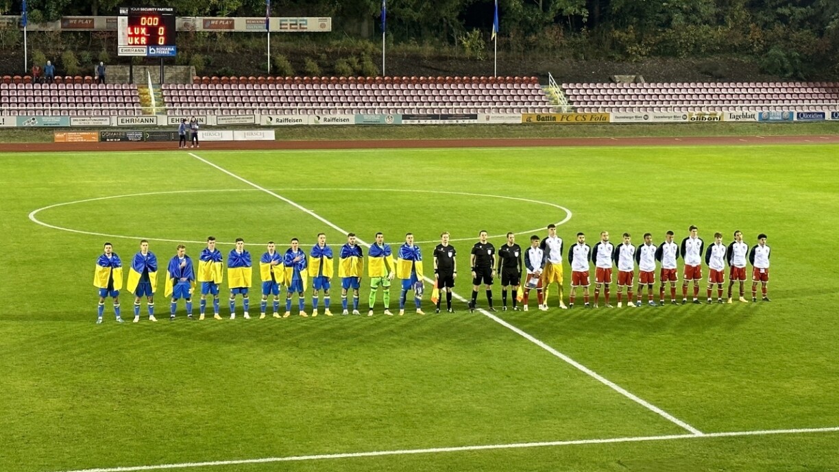 Déi 661 Spectateuren am Stade Emile Mayrisch um Escher Gaalgebierg hunn eng Ufanksphas gesinn, an där net all ze vill Nennenswäertes geschitt ass. D’Ukrain hat zwar vill de Ball, Lëtzebuerg huet hinnen awer keng Raim ugebueden, fir sech vill Chancen ze kreéieren. An der Suite hu sech d’Gäscht awer dunn ëmmer méi geféierlech Aktiounen erausgespillt an an der 45. Minutt konnte si du mat 1:0 duerch den Ihor Krasnopir a Féierung goen.