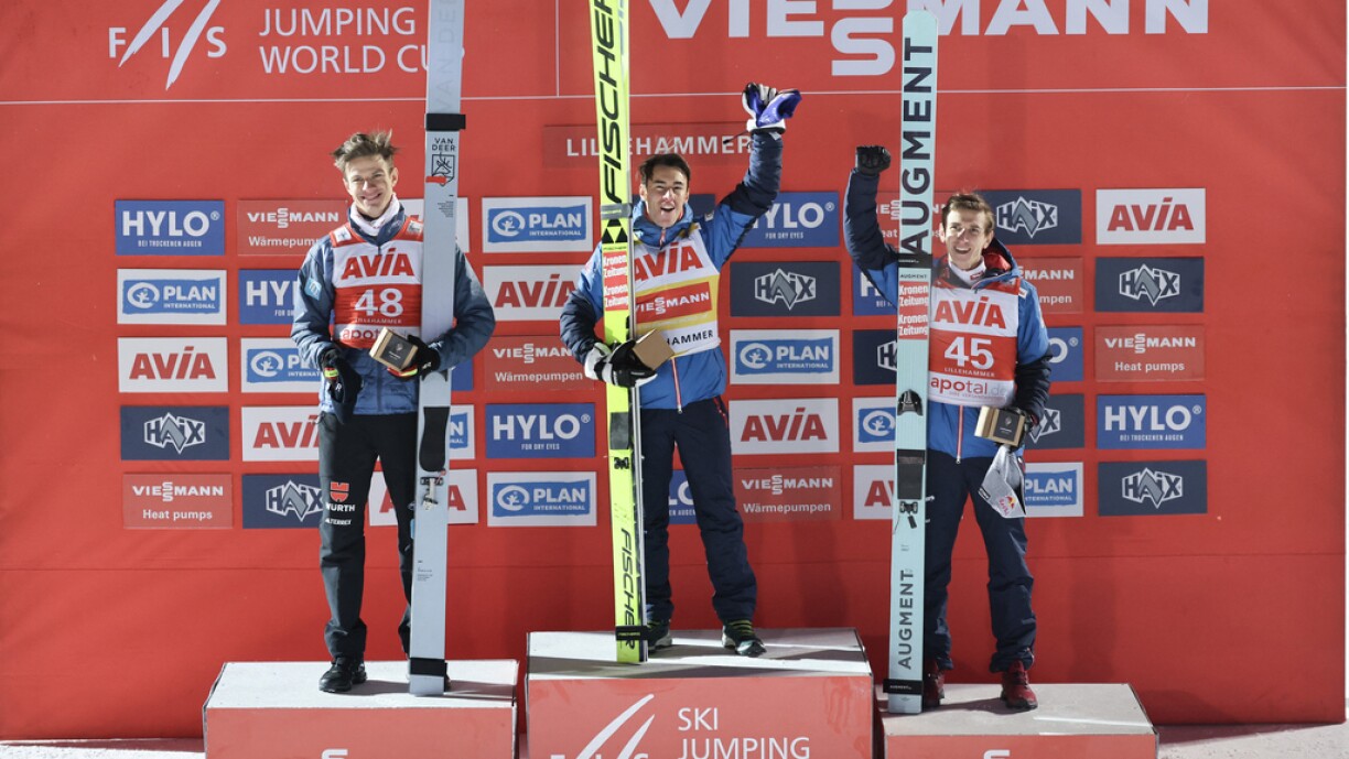 Wéi e Samschdeg wënnt de Stefan Kraft d’Weltcup-Sprangen zu Lillehammer virum Däitschen Andreas Wellinger a sengem Landsmann Jan Hörl. Den Éisträicher hat no Spréng op 134 an 141,5 Meter just 5,9 Punkte Virsprong op de Wellinger. Plaz 4 goung mam Karl Geiger un e weideren Däitschen.