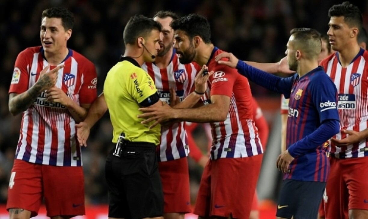Am Match géint Barcelona hat den Diego Costa sech opgereegt, well den Arbitter eng Aktioun vum Arthur net gepaff hat. Der Stiermer vun Atlético Madrid hat doropshin d’Mamm vum Arbitter beleidegt. Nodeems en dowéinst mat Rout vum Terrain gesat gi war, huet hien och nach den Arbitter un der Schëller ugepaakt.