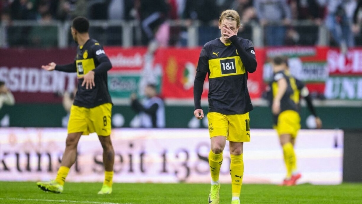 No der Néierlag an der Champions League géint Real Madrid huet Dortmund och an der Bundesliga de Kierze gezunn. Augsburg goung mat 2:1 als Gewënner vum Terrain.