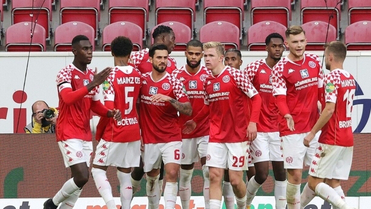 D’Freet fir Mainz war allerdéngs just vu kuerzer Dauer. No enger Flank vum Angelino konnt sech den Upamecano mam Kapp duerchsetzen an de Ball op den Halstenberg leeden, deen de Ball aus 5 Meter an de Filet setze konnt. An enger flotter Partie hat Mainz sech och nom zweete Réckstand net geschockt gewisen, a sou war et op en Neits den Niakhaté, deen nach virun der Paus den Ausgläiche markéiere konnt.