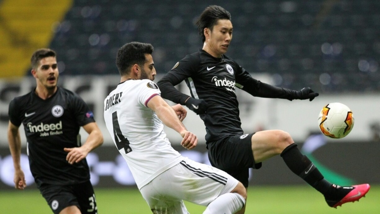 Nach méi schwéier huet sech Frankfurt doheem géint Basel gedoen. An der Paus ware si schonn 0:1 hannen, dat no engem Gol vum Campo an der 27. Minutt. Ma den Bua (73') an de Frei (85') sollte béid nach een dropleeën, esou datt Basel scho quasi mat engem Been an de Véierelsfinalle vun der Europa League steet.