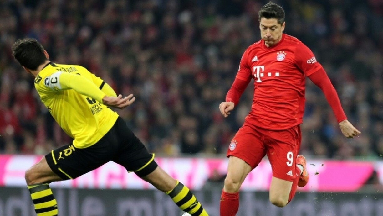 Bayern München war vun Ufank u vill besser am Match wéi de BVB an huet sech déi eng oder aner gutt Chance erausgespillt. An der 17. Spillminutt huet et dunn eng éischte Kéier am Gol vum BVB gerabbelt. No enger Flank vum Pavard stoung de Lewandowski ganz fräi an huet dem Bürki am Dortmunder Gol keng Chance gelooss. An der 36. Minutt huet op Säite vum BVB de Sancho den Terrain misse verloossen. Fir hien ass de Guerreiro era komm. Vu Borussia Dortmund ass virun allem am Spill no vir vill ze wéineg komm, sou dass Bayern verdéngt no 45 Minutte mat 1:0 a Féierung louch.