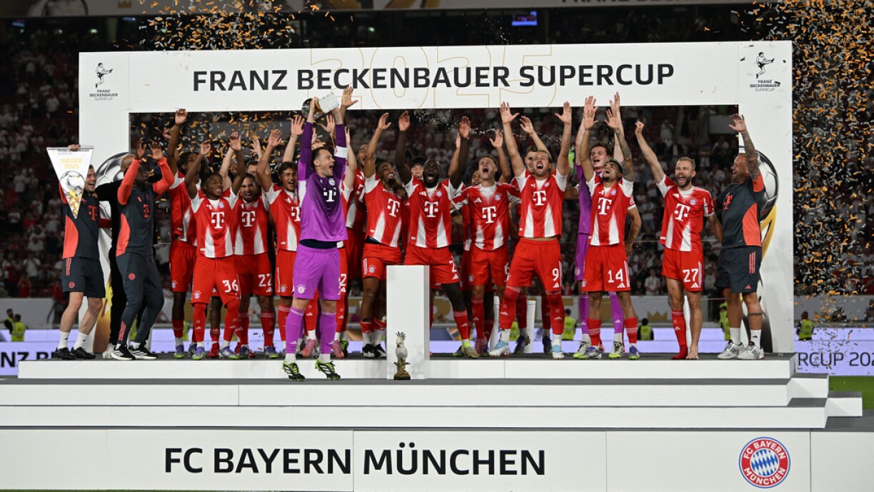 Den éischten Titel an Däitschland fir dës Saison geet un den FC Bayern München. Si setze sech iwwer wäit Strecke verdéngt géint Stuttgart duerch. D’Bayern haten de bessere Start a konnte séier dovu profitéieren. De Kane krut de Ball vum Géigespiller ongewollt perfekt zerwéiert an huet en aus 17 Meter eragesat. München hat weider seng Méiglechkeeten, mee och Stuttgart huet de Wee Richtung Gol gesicht a fonnt; den Neuer huet zwee Mol an héchster Nout agräife mussen.