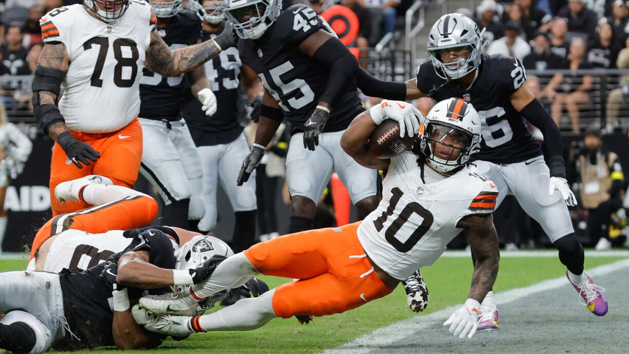 Datt d’Browns an d’Raiders wéineg bis keng Chancë méi hunn, sech fir d’Playoffs ze qualifizéieren, steet u sech scho fest. An trotzdeem war et grad fir d’Browns eng ganz wichteg Partie. Well mam Shedeur Sanders hu si hiren drëtte Quarterback, deen dës Saison e Match ufänkt. Leschte Match koum hien no enger Blessur vum Dillon Gabriel eran an huet net déi beschte Leeschtung bruecht. Dës Woch ware seng Statistike ganz ok, wat dann och duergaangen ass, fir d’Partie géint Raiders ze gewannen. D’Raiders haten nämlech doheem net vill opweisen. Fréi ware si 0:14 hannen a konnte bis zu der Paus op 3:14 verkierzen. Ma nees goungen déi nächst Punkten un d’Browns, déi nach op 24:3 erhéije konnten. Déi lescht Punkte ware dunn awer fir d’Raiders, déi nach kuerz viru Schluss op 24:10 verkierze konnten.