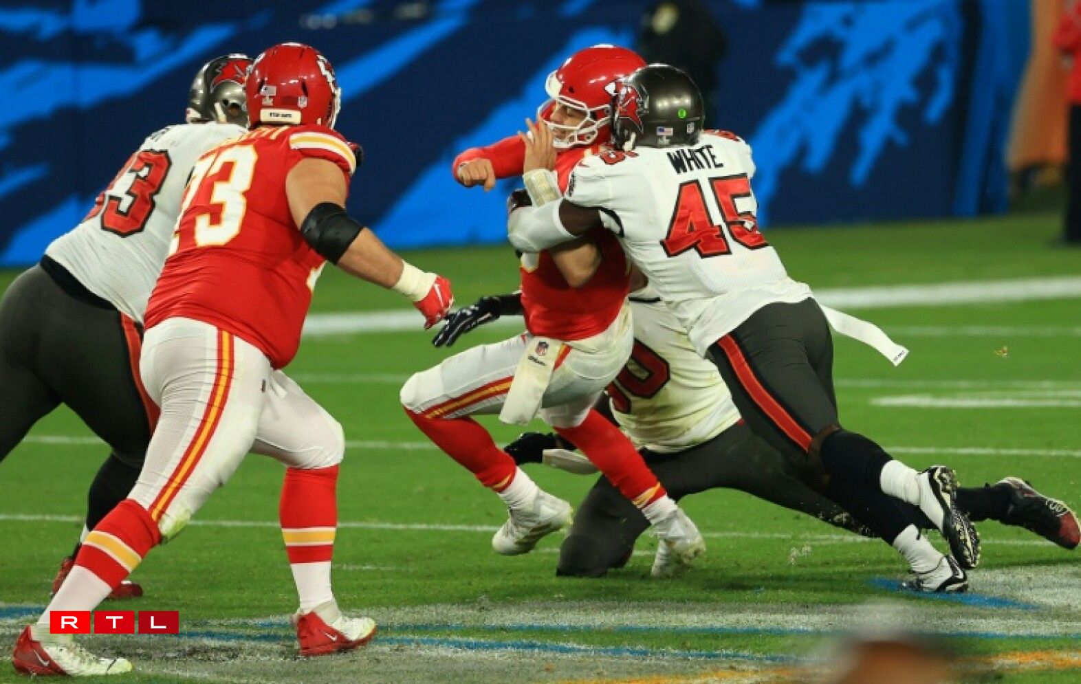 Duerch de personellem Manktem hat de Quarterback vun den Chiefs, de Patrick Mahomes, et immens schwéier, sech an Zeen ze setzen. D’Kansas City Chiefs haten net hire beschten Dag erwëscht. Et däerf een awer d’Leeschtung vun Tampa Bay dobäi net vergiessen.