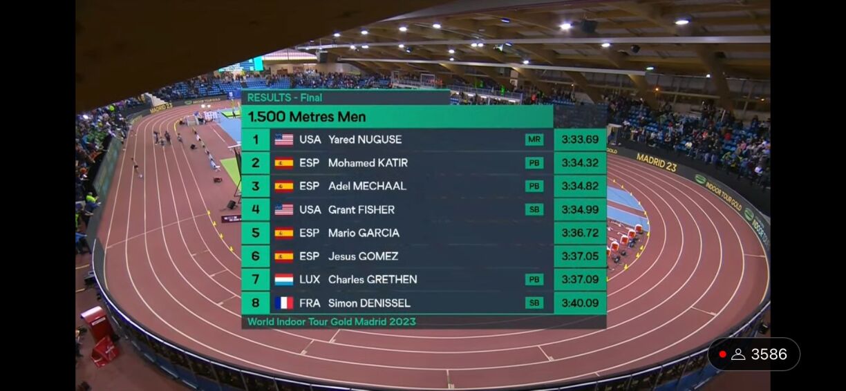 An der Finall zu Madrid koum hie mat dëser Zäit op déi 7. Plaz. Gewonnen hat den Amerikaner Yared Nuguse, deen d’Streck an 3 Minutten, 33 Sekonnen an 69 Honnertstel gelaf ass.