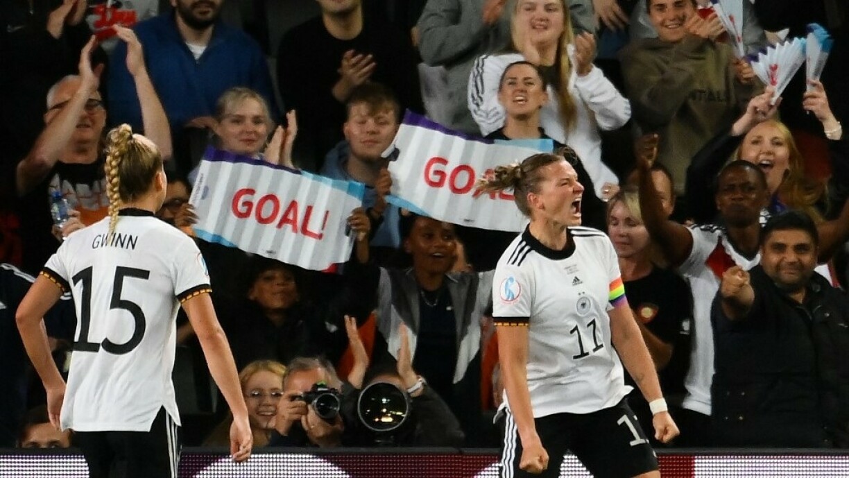 No 40 Minutte war et Däitschland, déi deen éischte Gol vun der Partie geschoss hunn, dat vum Alexandra Popp, dat niewent der däitscher Nationalekipp fir Wolfsburg spillt.