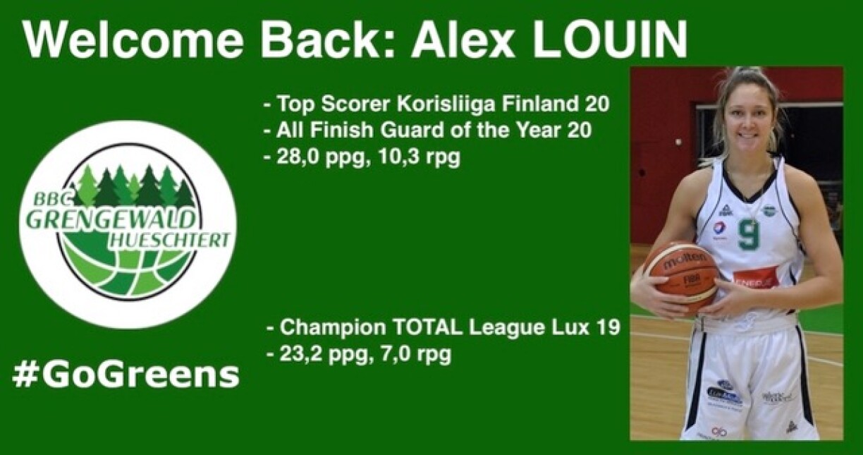D’Alex Louin war eent vun den Haaptpiliere vum Succès am Championnat 2019. D’Spillerin wäert fir d’europäesch Coupe disponibel sinn a wäert géint Capitale Namur den 9. Dezember kënne spillen.