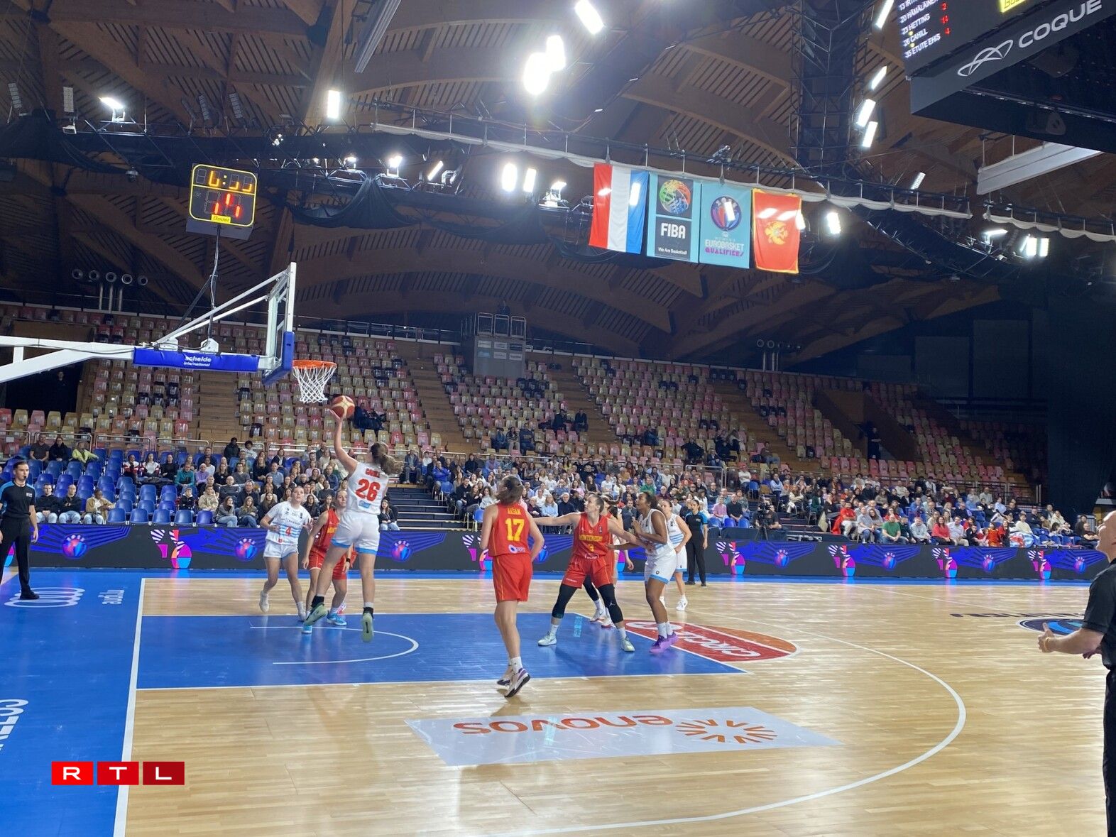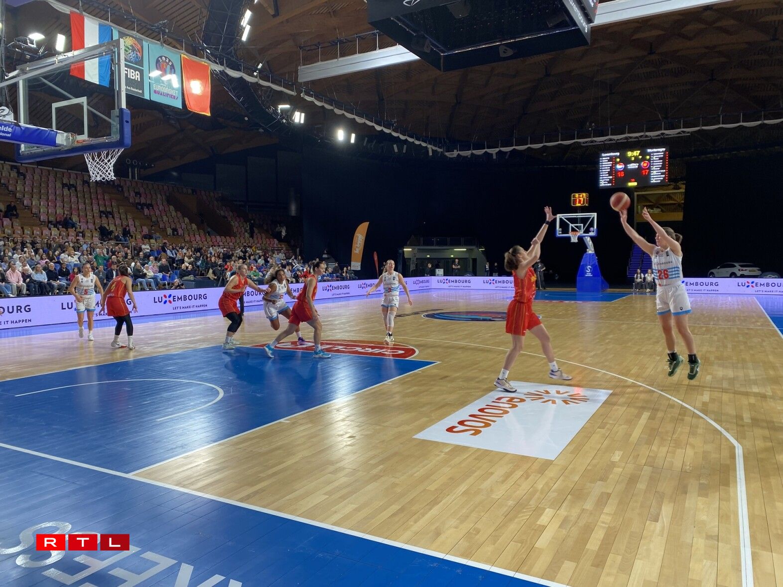 Virun ronn 700 Spectateuren huet d’Amanda Cahill an der Arena vun der Coque 32 Punkten, dorënner 5 Dräier, markéiert a war domat beschte Spillerin. D’Anne Simon huet nach weider 19 Punkten zur Victoire bäigesteiert. An der Tabell huet Lëtzebuerg no dräi Spilldeeg dräi Victoiren um Kont an domat de Maximum vun de Punkten.