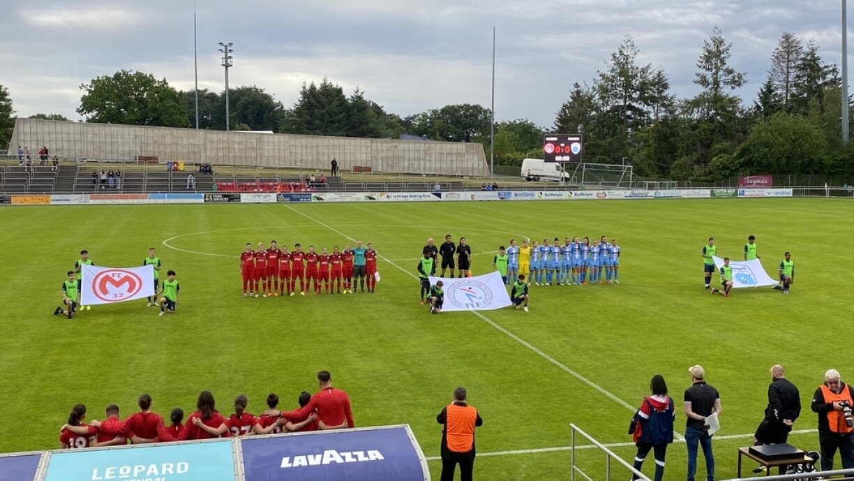 An der éischter Hallschent war de Racing spillbestëmmend, mee huet laang op déi richteg gutt Golgeleeënheet misse waarden. No ronn 30 Minutten hat d’Ekipp vum Alexandre Luthardt dunn eng gutt duebel Chance, allerdéngs ouni déi néideg Reussite. 10 Minutte virun der Paus huet d’Golkippesch vu Mamer Sheila Hoja wéinst enger Noutbrems misse fréizäiteg dusche goen. Well Mamer keen Ersatz op der Bänk hat, huet d’Stiermerin Julia Battisti missen an de Gol goen. Mamer huet och no der Paus gutt verdeedegt a wier duerch dem Stibling säi Schoss vun der Mëttellinn bal a Féierung gaangen. De Potto stoung awer am Wee. De Racing huet weider gedréckt a konnt an der 65. Spillminutt duerch d’Kimberly Dos Santos de Score op 1:0 setzen. Ronn 10 Minutten duerno konnt d’Karoline Kohr och nach op 2:0 an d’Julie Wojdyla 10 Minutte méi spéit op 3:0 erhéijen. Kuerz viru Schluss konnt Mamer duerch ee Sonndesschoss vum Morgane Stibling nach op 1:3 an duerch d’Jil Kohl op 2:3 verkierzen. Dëst sollt awer näischt um Ausgang vun dësem Match änneren. De Racing huet sech um Enn mat 3:2 behaapt.