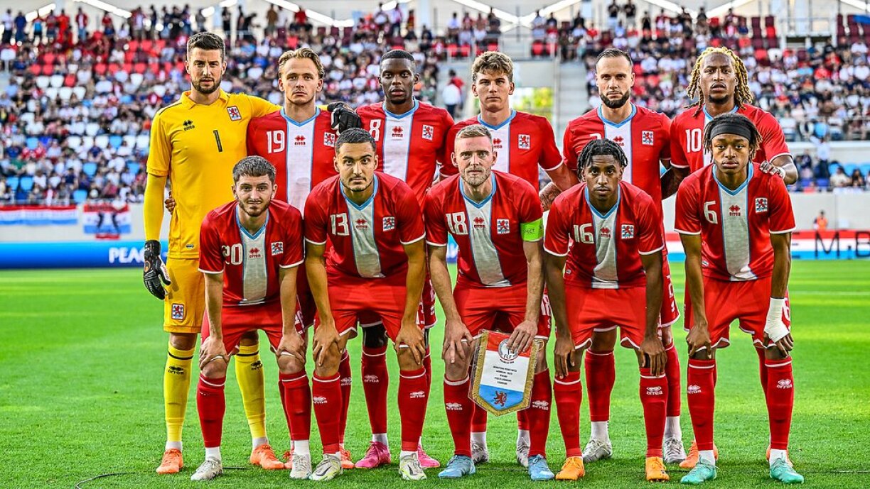 Am 24 Mann grousse Kader sinn d’Iwwerraschungen ausbliwwen, mam Mica Pinto feelt allerdéngs ee ganz wichtege Spiller wéinst Blessur. Den Danel Sinani ass no senger Spär géint Malta nees mat dobäi. Vu 24 Spiller spillen der mam Ralph Schon an Dejvid Sinani just zwee hei am Land.