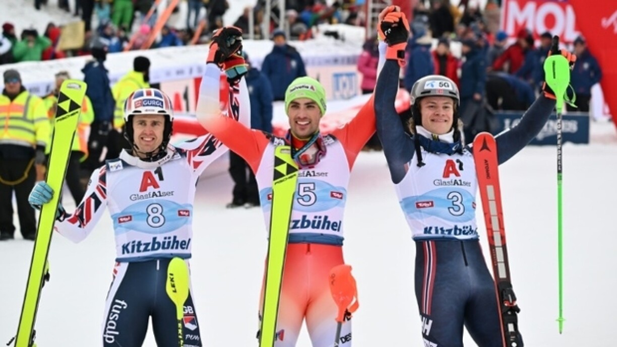 Bei den Hären huet de Schwäizer Daniel Yule beim Slalom zu Kitzbühl triumphéiert. Mat enger Zäit vun 1 Minutt, 44 Sekonnen an 63 Honnertstel huet hien de Britt Dave Ryding (+0.40 Sekonnen) an den Norweger Lucas Braathen (+0.41 Sekonnen) hannert sech gelooss.