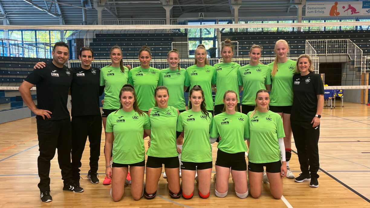 An der Sportshal um Cents spille vun 19 Auer un d’USC Münster aus der däitscher Bundesliga an Terville/Florange aus Frankräich géintenee. D’Fransousen haten et déi leschte Saison bis an Halleffinalle vun der franséischer Coupe gepackt.