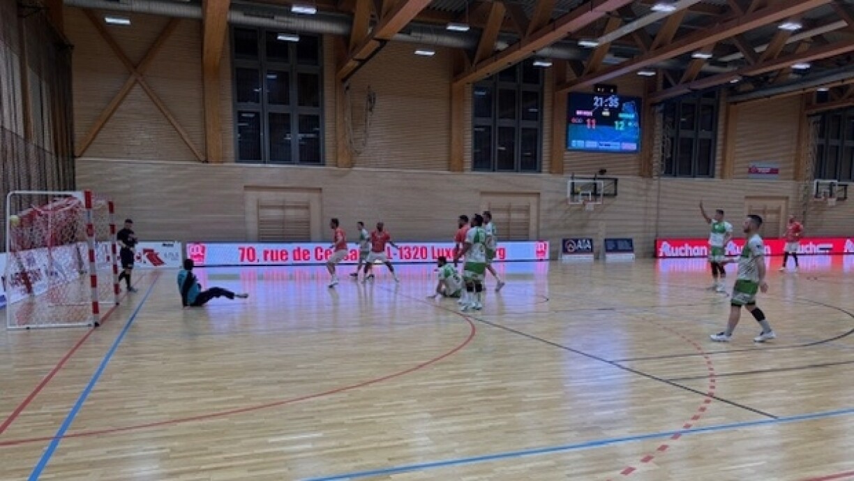 Et war vun Ufank un en enke Match. Diddeleng hat wuel laang de Lead, konnt sech awer ni méi wéi 2 Goler ofsetzen. An der 20. Minutt sollt sech d’Blat wenden: Esch war déi nächst Minutte vir, awer och mat maximal engem Gol, sou dass et mat 15:15 an d’Kabinne goung. Bei de Gäscht hunn d’Etute-Bridder nees ofgeliwwert an am éischten Duerchgang zesummen aacht Goler markéiert.