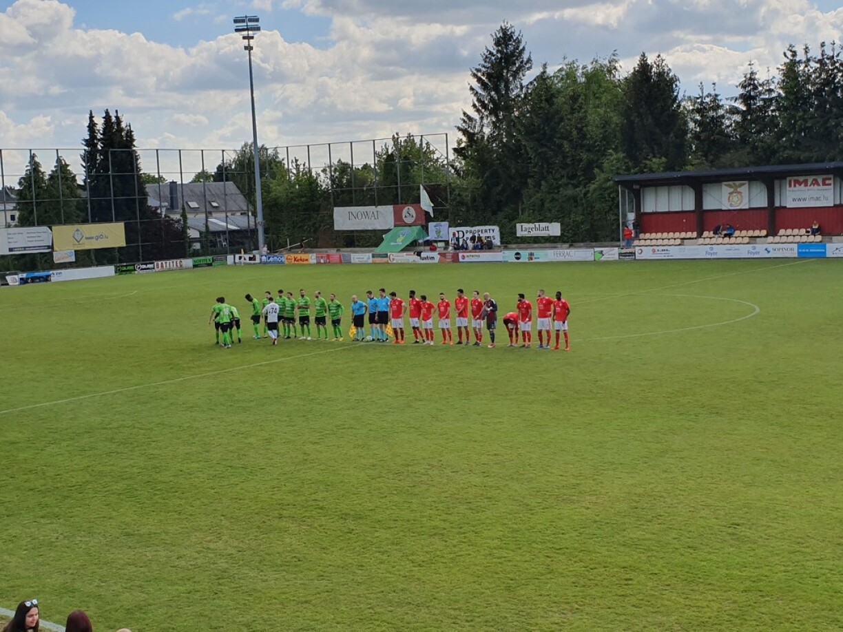 Nodeems an den éischte 45 Minutte keng Ekipp dem Match de Stempel opdrécke konnt, goung et mat engem 0:0 op den Téi. 10 Minutte viru Schluss konnt de Lusamba fir den USR markéieren a just 2 Minutt méi spéit war et de Szimayer, deen ausgläiche konnt.
