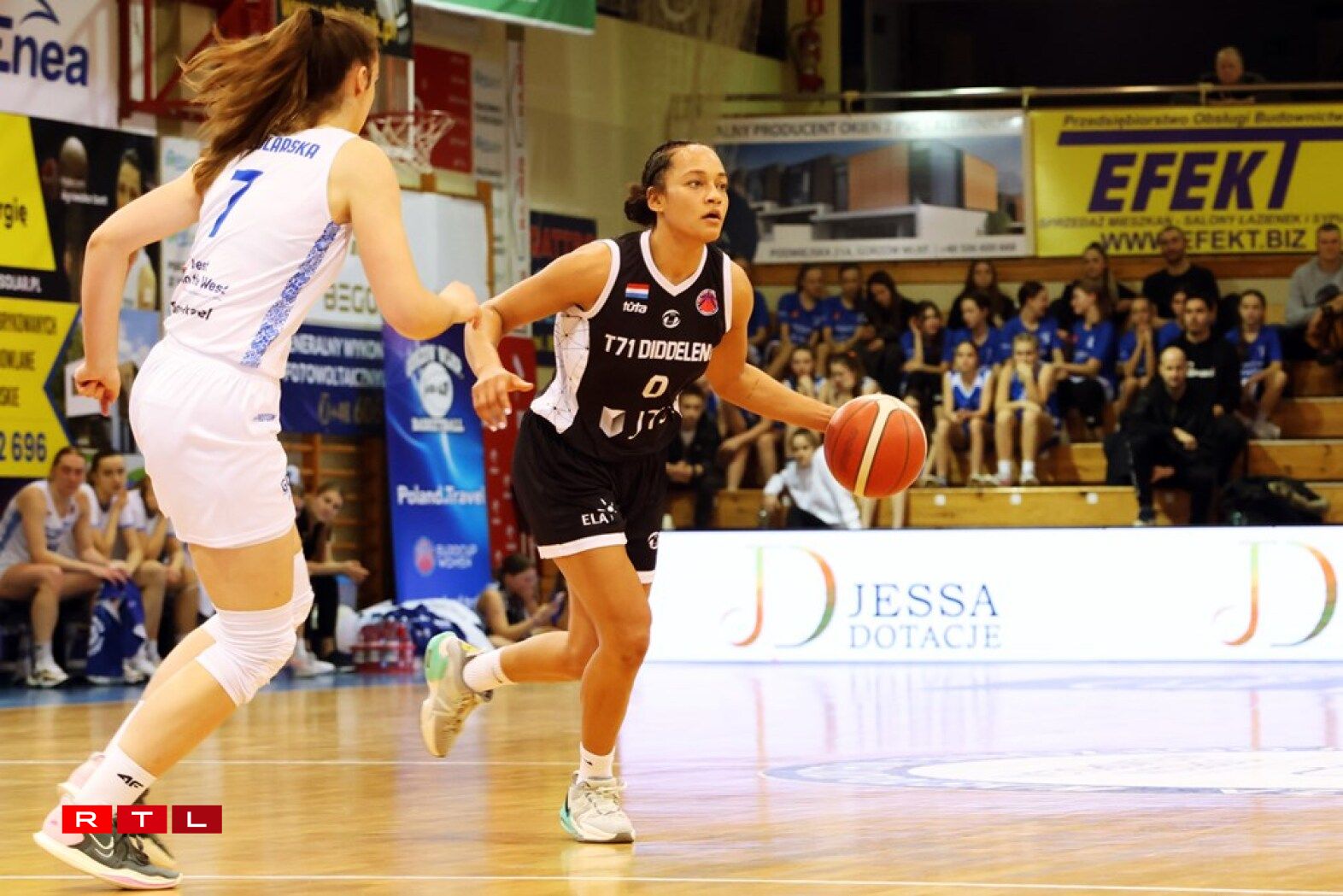 Diddeleng huet auswäerts a Polen vun Ufank u matgehalen, d’Mia Loyd war net ze stoppen an der éischter Hallschecht an d’Gäscht aus Lëtzebuerg louchen an der Paus mat 45:37 a Féierung. Nom Säitewiessel huet sech den T71 bis op 14 Punkten ofgesat, allerdéngs ass d’Lokalekipp nach emol zeréck an de Match komm an zum Schluss gouf et spannend. Um Enn setzt sech Diddeleng mat 92:83 duerch. Iwwerzeegt huet an engem insgesamt staarke Kollektiv d’Mia Loyd mat 34 Punkten an 11 Rebounds.