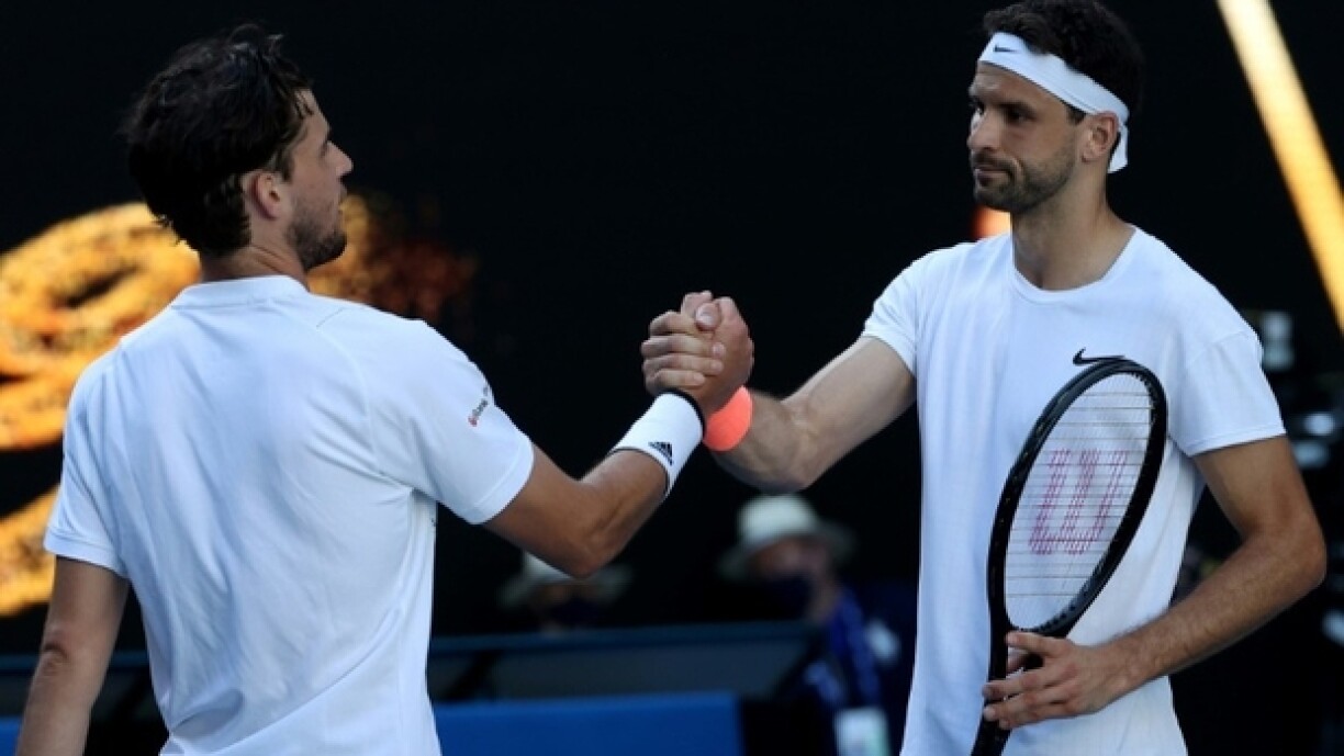 Bei den Hären hat den Dominic Thiem, Nummer 3 op der Welt, e Sonndeg de Moie fréi eiser Zäit net vill ze gutt géint de Grigor Dimitrov. De Bulgar, aktuell op Plaz 18 an der Weltranglëscht, huet sech iwwerraschend souverän an 3 Sätz 6:4, 6:4 a 6:0 géint den Éisträicher duerchgesat an ass domat elo an der Véierelsfinall. Hei trëfft hien op de Russ Aslan Kasbekowitsch Karazew, deen a 5 Sätz géint de Kanadier Félix Auger-Aliassime gewonnen hat.