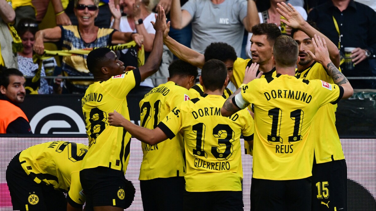 An der Owespartie vum éischte Spilldag huet sech Borussia Dortmund mat 1:0 géint Bayer Leverkusen duerchgesat. De BVB war schonn no 10 Minutten duerch de Reus a Féierung gaangen, well Leverkusen sech eng Gaffe geleescht huet. Duerno hat Dortmund an der éischter Hallschent nach e puer Chancen op 2:0 ze erhéijen. Kuerz nom Säitewiessel huet Leverkusen den Ausgläich geschoss, deen awer wéinst Abseits duerch de VAR oferkannt gouf. D’Werkself huet sech méi Chancen erausgespillt a weider Drock gemaach, mee och d’Haushären haten hir Méiglechkeeten. An der Nospillzäit krut de Golkipp vu Leverkusen, de Hradecky, nach déi Rout Kaart wéinst Handspill baussent dem 16-Meter.