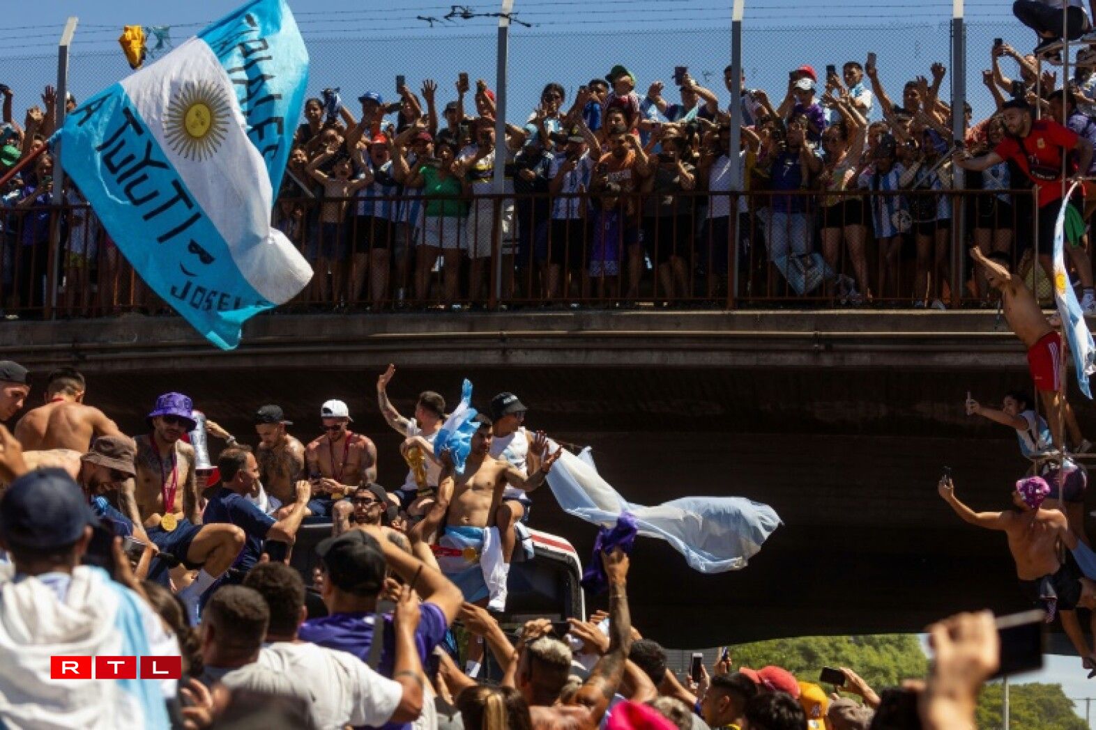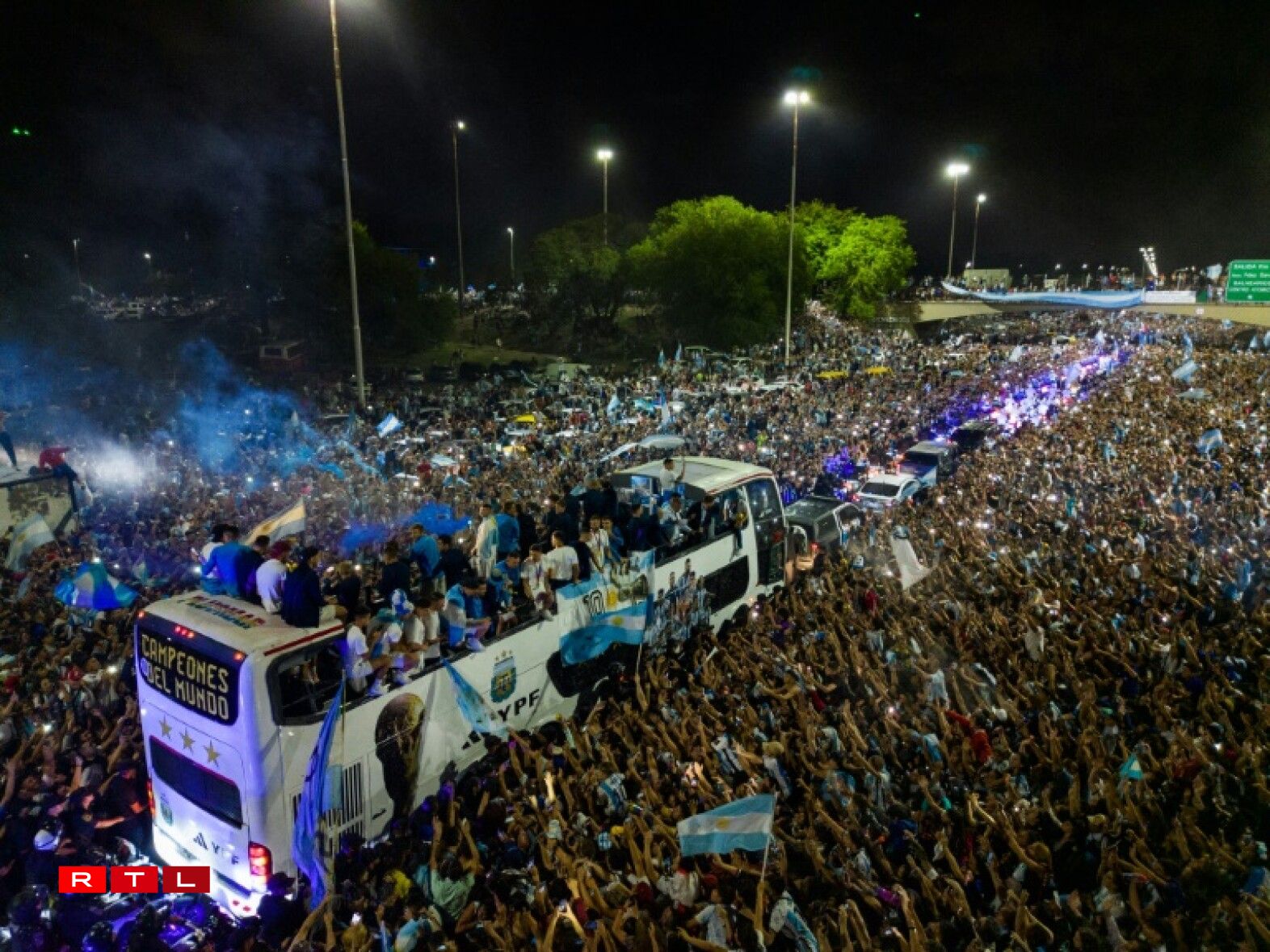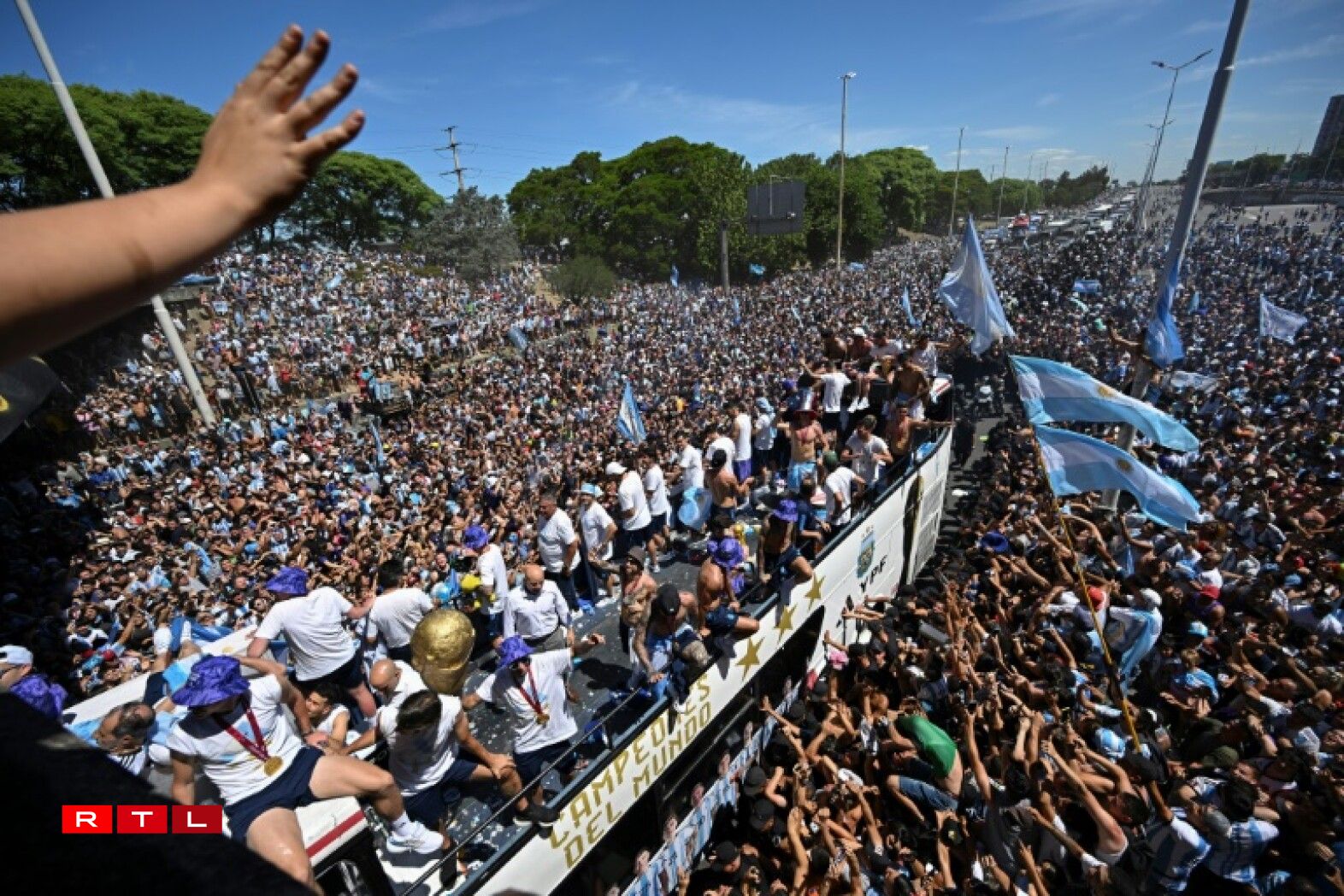 Déi frësch gebake Futtball-Weltmeeschter goufen um Wee an d’Haaptstad vun enger Millioun Supporter erwaart. Fir datt och keen Argentinier dësen historeschen Ament verpasst, huet de President Alberto Fernandez dësen Dënschdeg zum Feierdag erkläert.