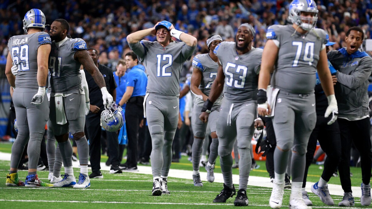 Et ass kaum ze gleewen, ma d’Detroit Lions hunn e Sonndeg den Owend hir éischt Victoire vun der Saison dierfe feieren an dat géint d’Minnesota Vikings, déi sech eigentlech Hoffnungen op d’Playoffs maachen. Um Enn wënnt Detroit mat 29:27, duerch ee staarke leschten Drive, wou de Quarterback Jared Goff Sekonne viru Schluss de St. Brown an der Endzon fonnt huet. Domat ass et also déi éischt Victoire am 12. Match fir d’Lions dës Saison a fir d’Vikings déi 7. Néierlag am 12. Match.