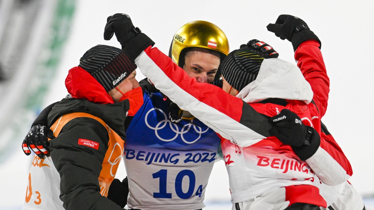 Éisträich huet sech d’Goldmedail geséchert. Op déi 2. Plaz ass Slowenien komm. Si haten e Retard vun 8,3 Punkten. Däitschland huet sech ganz knapp virun Norwegen Bronze geséchert. Tëscht béiden Ekippe louchen um Enn nëmmen 0,8 Punkten (44 Zentimeter).