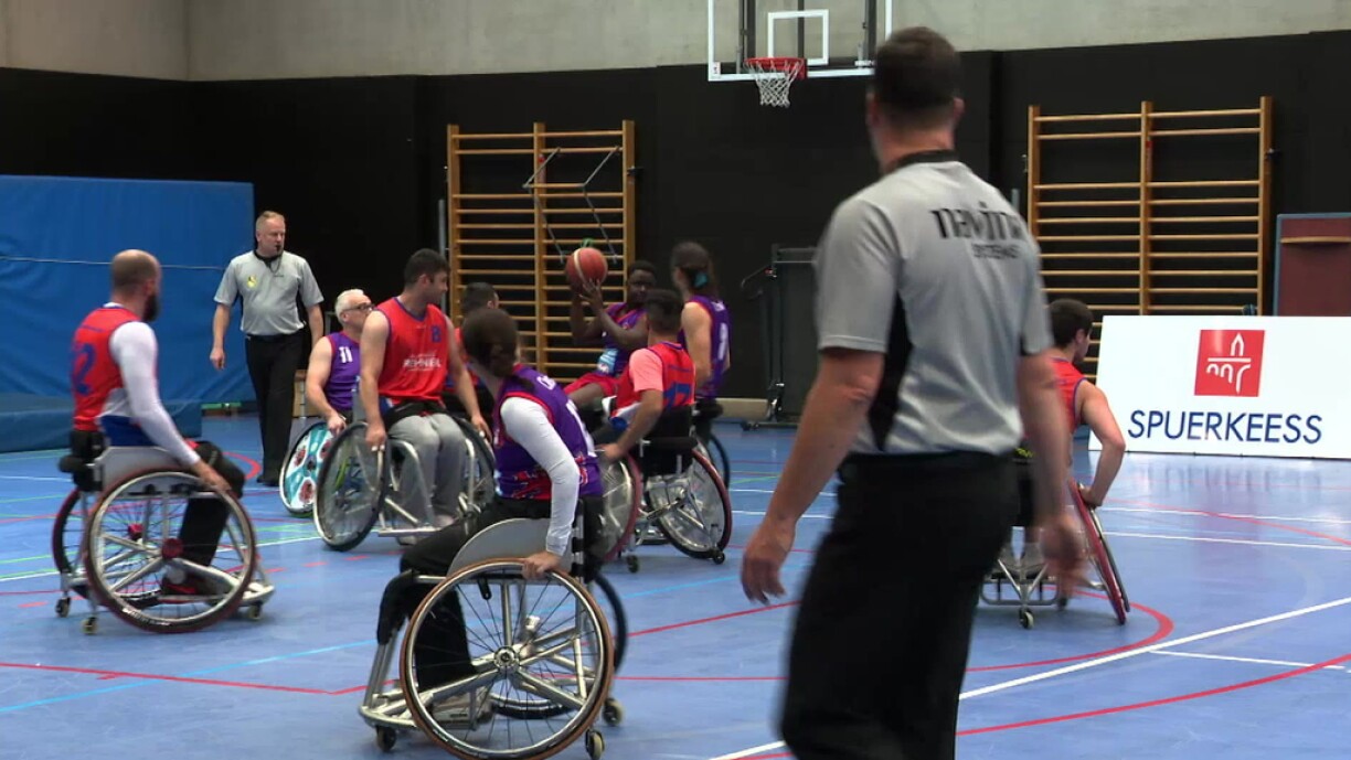 Basket am Rollstull ass näischt fir empfindlech Naturen an erfuerdert eng gutt Beherrschung vu Rollstull a Muskelen. D’Reegele si gréisstendeels wéi am klassesche Basket an et ass méiglech, dass Männer a Fraen an enger Ekipp kënne spillen.