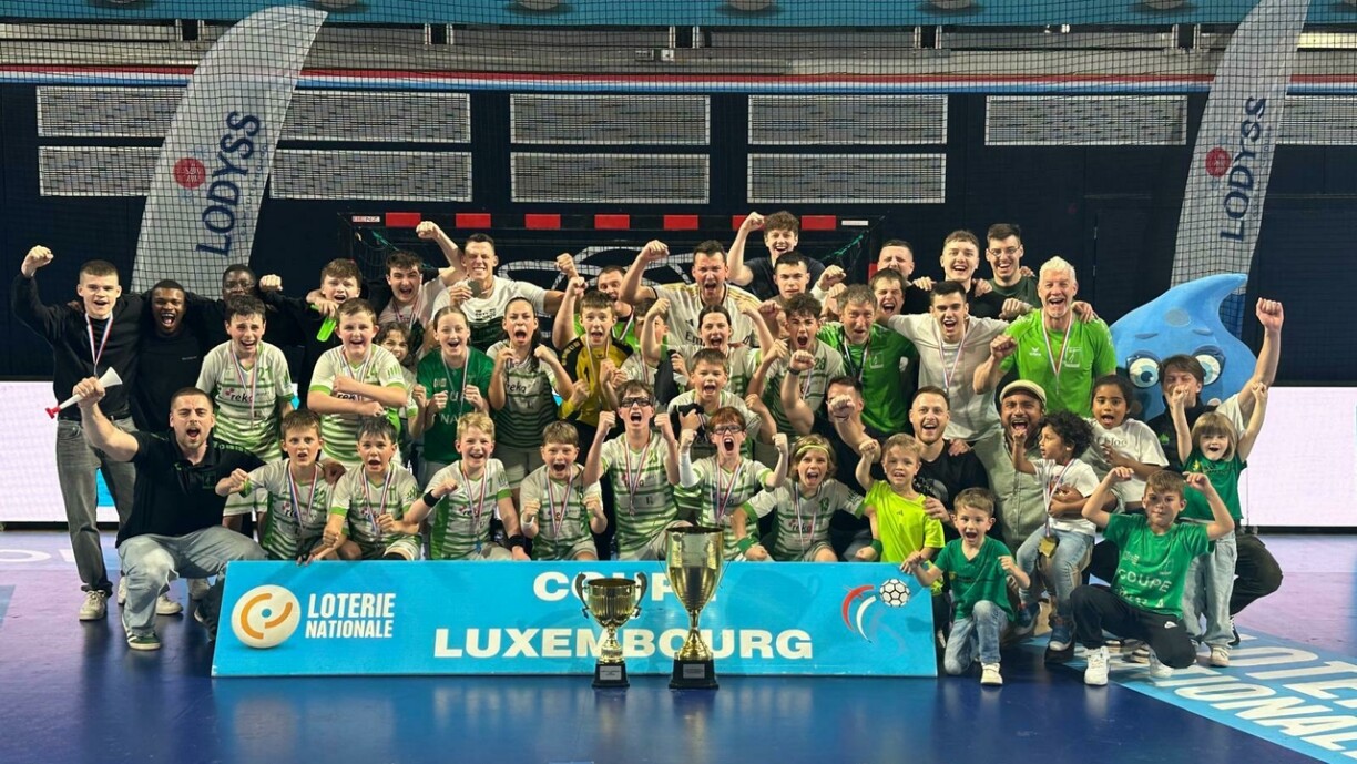 No der Victoire vun der Bierchemer U-13 sinn d’Spiller vun der éischter Ekipp op den Terrain gaangen, fir zesumme mat deene jonke Sportler eng gemeinsam Foto ze maachen. Nom ville Feieren, well och d’U-17 konnt d’Coupe mat an de Réiserbann huelen, huet d’éischt Ekipp elo e puer Deeg Paus, ier dann d’Missioun Doublé an d’Viséier geholl gëtt.