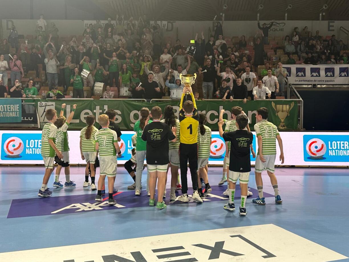 E Samschdeg huet jo am Handball den HC Bierchem bei den Hären d’Coupe de Luxembourg gewonnen. Vu 16 Spiller um Spillbou an der Halleffinall an an der Finall kommen der zéng aus der eegener Jugend vun deene Réiserbänner. Siwen dovun hunn an der Finall géint Diddeleng och op d’mannst ee Gol geschoss. An der Halleffinall géint d’Red Boys stoungen déi lescht fënnef Minutte souguer véier U-19-Spiller vun deene Bierchemer um Terrain. E Sonndeg de Mëtteg dunn huet quasi déi ganz éischt Ekipp ronderëm de Kapitän Ben Weyer et sech net huelen gelooss, nees an der Coque ze sinn, fir hir U-13 an der Finall géint de Standard vun der Tribün aus, natierlech mat der Coupe, Trommelen an Trompetten ze ënnerstëtzen.