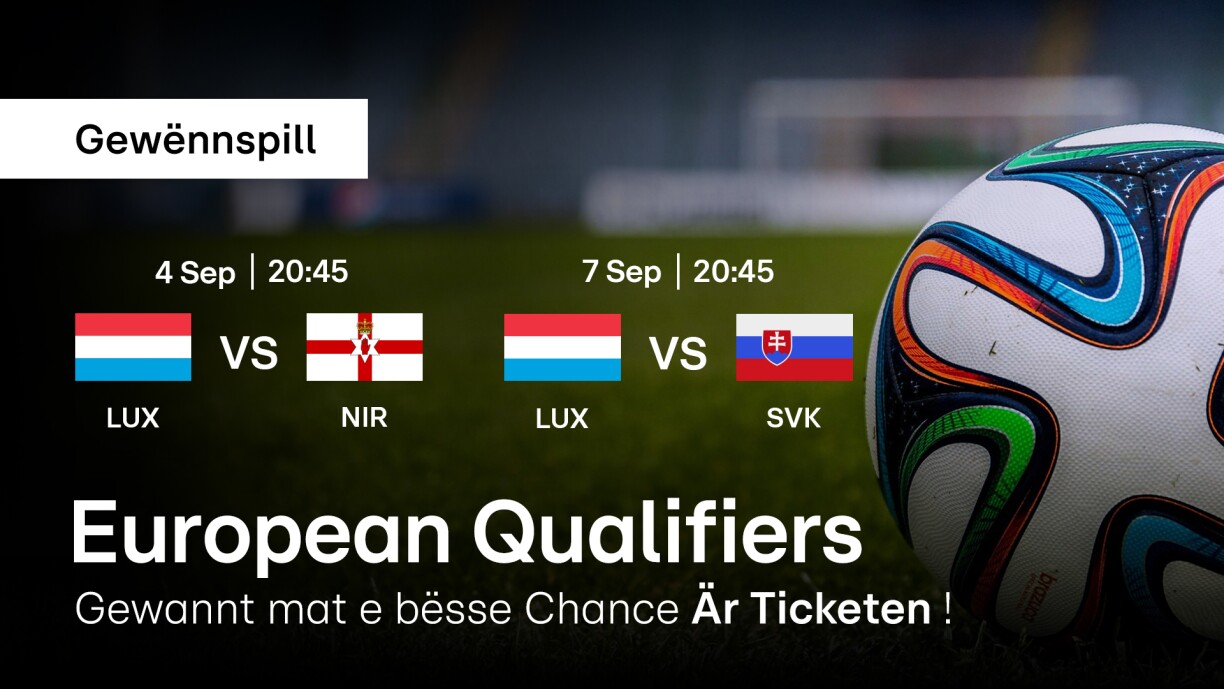 Dir wëllt en internationale Futtballmatch live am Stadion erliewen? Maacht elo mat bei eisem Gewënnspill a gewannt Tickete fir ee vun den nächste Matcher vun der Lëtzebuerger Nationalekipp.