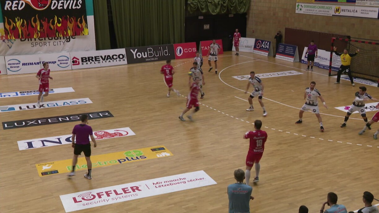 Huele mer als rezente Beweis de gewonne Match vun de Red Boys am Challenge Cup géint Dukla Prag. Hei huet alles gestëmmt: den Asaz an der Defense, wou et fir d’Profie vu Prag kaum een Duerchkomme gouf, bis hin zum Ugrëff, wou de Batinovic de Meeschter um Terrain war. Hien dierft och an der Coupe e Garant vu Goler sinn. An dann ass endlech och de Yann Hoffmann nees derbäi: 4 oder 5 Goler gehéieren zu sengem Package. Déifferdeng huet flotten Handball gespillt.