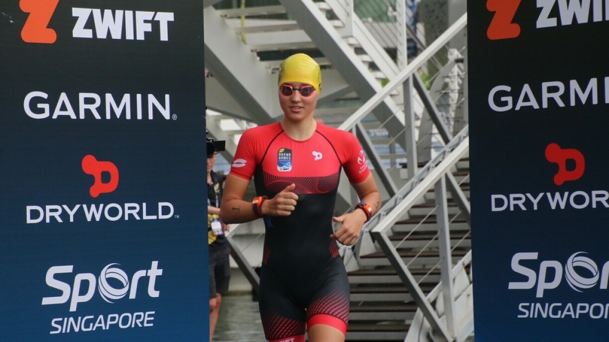 Zu Singapur war e Samschdeg d’Finall vun den Arena Games am Triathlon, en eSport-Event. D’Lëtzebuergerin Eva Daniëls konnt sech an der Finall (200 Meter Schwammen, 4 Kilometer Vëlo an 1 Kilometer lafen) vun den Dammen op der staarker 7. Plaz klasséieren. Si hat e Retard vun enger Minutt an 22 Sekonnen op d’Gewënnerin Zsanett Bragmayer aus Ungarn.