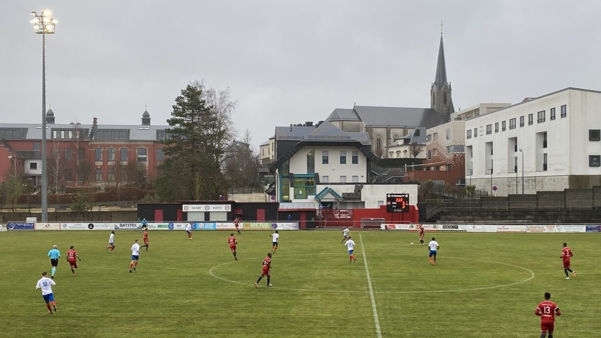 Zu Rodange haten am 1. Duerchgang béid Ekippen hir Problemer gudde Futtball ze spillen. Souwuel Rodange wéi och d’Etzella hunn nervös an hektesch gewierkt, sou dass just seele Chancen zestane komm sinn. Ouni Goler ass et also och an d’Paus gaangen. Nom Säitewiessel ass déi bescht Chance op e Gol fir Ettelbréck dann duerch e Fräistouss komm. Duerch dem Holtz säi Schoss op de Potto an dem Nicolay säin Noschoss op d’Lat hat de Gaascht direkt zwee Mol Pech mam Aluminium, sou dass et weiderhin beim 0:0 bliwwen ass. Virun allem huet sech de Match am duerch Zweekämpf ofgezeechent, ma am leschten Drëttel huet béiden Ekippen déi néideg Prezisioun gefeelt. No 72 Minutten war et dann den N’Cho deen d’Etzella a Féierung brénge konnt. 5 Minutte viru Schluss huet de Kadrija dann op 2:0 erhéicht. Zwar ass Rodange nach den Uschlossgol gelongen, ma fir ee Punkt ass et net méi duergaangen, sou dass d’Etzella zum Schluss mat 2:1 zu Rodange gewënnt.