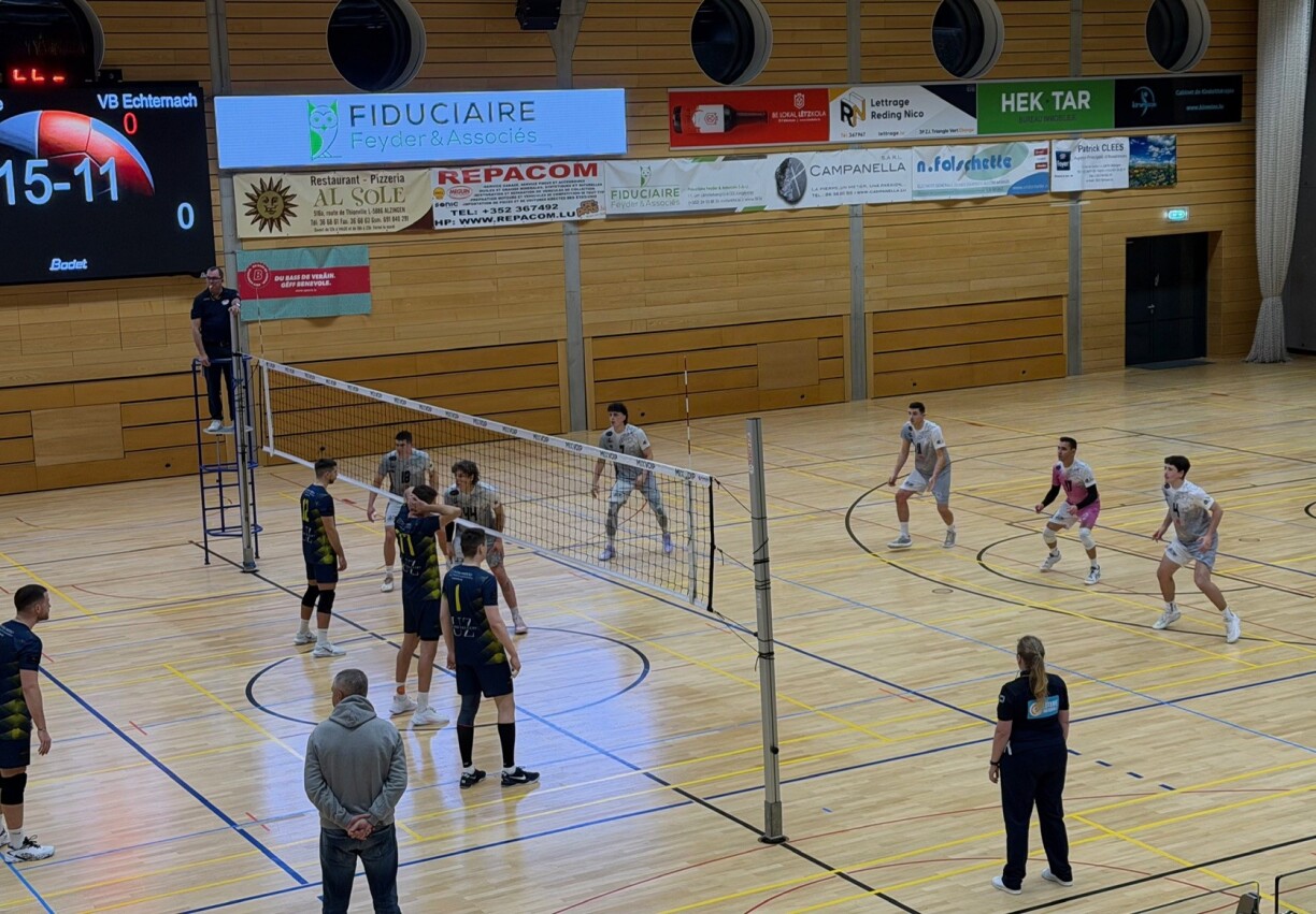 Den Escher VBC huet sech misse géint d’Häre vun der Gym moossen. D’Gäscht, déi an der zweeter Divisioun spillen, haten hei an all Saz fënnef Punkten Avance. Dëst huet hinnen am éischte Saz zum Erfolleg verhollef. Och Ufanks vum zweete Saz war d’Gym Volley mat 10:4 am Avantage, wéi den Escher Spillertrainer Juan Carlos Blanco d’Verantwortung um Terrain iwwerholl huet. Vun deem Ament un ass et bei den Escher besser gerullt a si konnten de Match mat 3:1 gewannen.