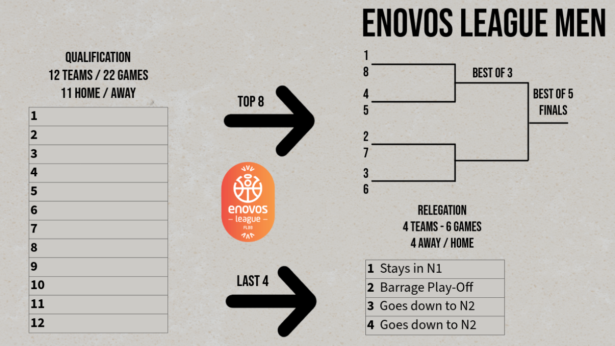 Insgesamt starten 12 Ekippen an der Enovos League bei den Hären. No 22 Matcher spillen déi bescht 8 Ekippen an de Playoffs géinteneen. Op d’mannst déi Plaz 8 ass domat och Zil vu ville Veräiner. Déi véier Ekippen am Tabellekeller spillen am Ofstigsgrupp géinteneen, zwou Ekippe falen direkt eraus an eng Ekipp spillt am Barrage géint den Drëtten aus der Nationale 2. D’Opsteiger Kordall Steelers an de Racing Lëtzebuerg wäerte sech an der héchster Liga beweise mussen. D’Musel Pikes hunn déi lescht Joren heiansdo gewackelt, um Enn d’Kéier awer ëmmer nees kritt. Mamer war d’lescht Saison schonn am Ofstigsgrupp a wëll dëse Grupp 2025/26 sécherlech evitéieren. No e puer Spilldeeg wäerten éischt Tendenzen ze erkenne sinn.