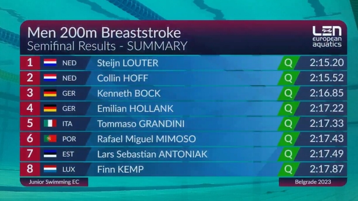 D’Finall gëtt e Freideg um 17.15 Auer geschwommen.