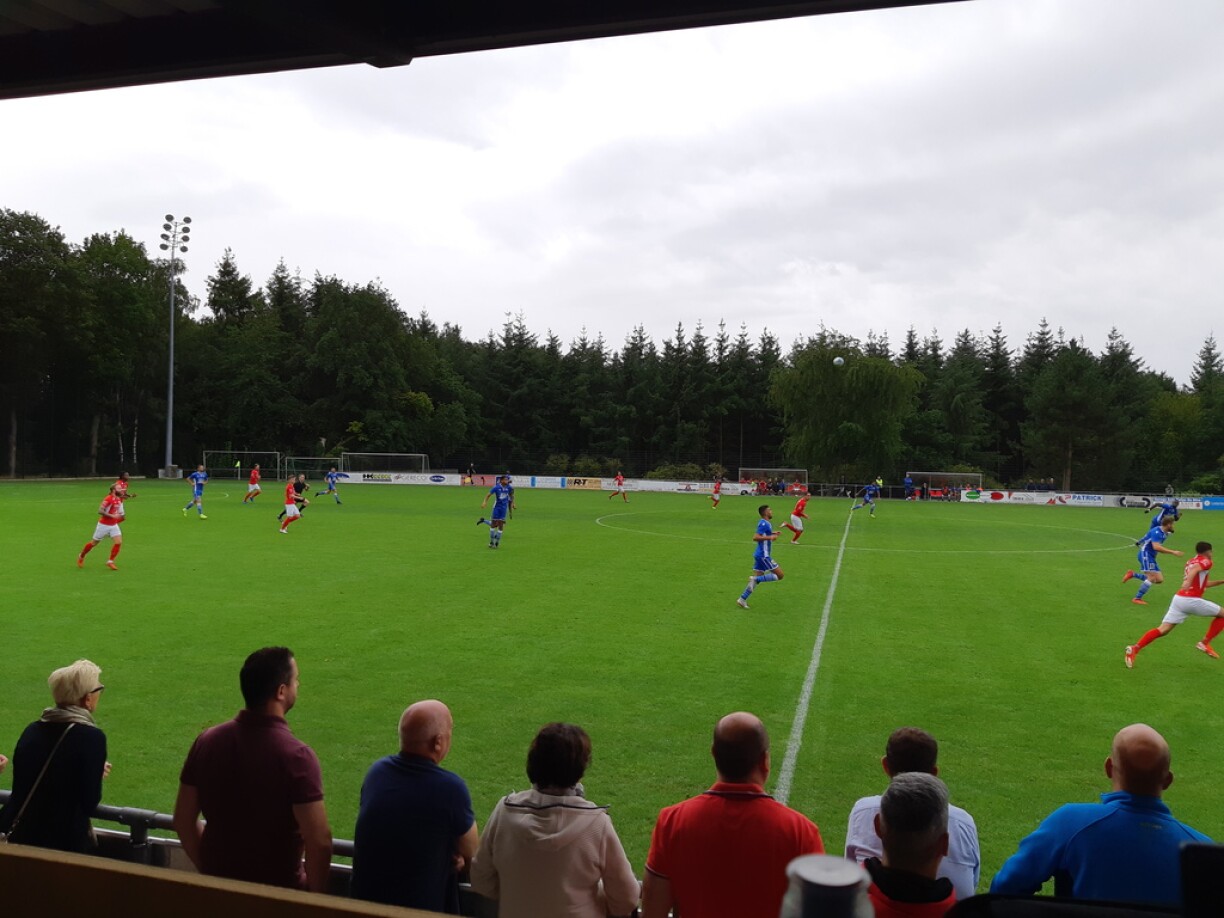 An der 20. Minutt huet eng éischte kéier am Filet gerabbelt. No enger Virlag vum Bidon konnt de Correia Mendes ganz fräi de Ball am Gol ënnerbréngen. 10 Minutte méi spéit a mat der éischter Golaktioun hunn d’Gäscht dann no engerm Corner an a Persoun vum Dzenid Ramdedovic den 1:1 geschoss. Mee nees nëmmen 1 Minutt méi spéit huet de Bidon de Golkipper ëmdribbelt an de Ball an de Gol geschoss. Kuerz virun der Paus huet de Correia Mendes mat sengem 2. Gol op 3:1 erhéicht.