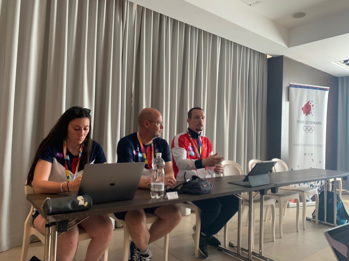 Hei gouf och gesot, datt d’Arrivée vun der Lëtzebuerger Delegatioun en Challenge war, well den Hotel nach net ganz fäerdeg war. Déi Verantwortlech vum Hotel hätten dëst awer gutt geréiert kritt an d’Sportler wieren zefridden. Just d’Situatioun mat de Kummere wier méi speziell, esou nach de fréiere Schwëmmer, deen och dem ganze COSL fir d’Aarbecht Merci gesot huet. Et wier deels och mam Transport eng schwiereg Situatioun, mee et hätt een alles ënner Kontroll, huet den Alwin de Prins verséchert.