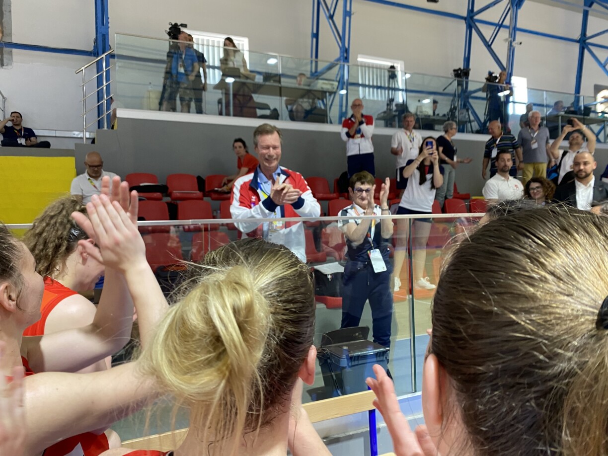 Am Basket koum et e Méindeg bei den Damme wéi och bei den Hären zum Duell Lëtzebuerg-Zypern. D’Rout Léiwinne konnten hire Match um Enn no enger gudder zweeter Hallschent mat 78:70 gewannen a kruten dann och an der Suite vum Grand-Duc fir hir Prestatioun gratuléiert. D’Hären hirersäits hunn hire Match géint Zypern och gewonnen, dat mat 78:62.