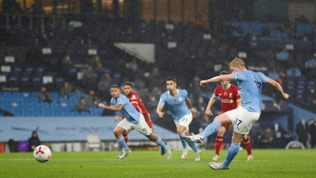 De Spëtzematch huet virun allem an der 1. Hallschent alles versprach wat e sech am Virfeld erwaarde konnt. Béid Ekippen hunn flotte séiere Futtball gewisen. An der 12. Minutt huet den Arbitter op de Punkt gewisen, dat nodeems de Walker de Mané am Strofraum gefoult huet. De Salah huet sech des Chance net entgoe gelooss a fir d’Féierung fir d’Reds gesuergt. De Gabriel Jesus huet dunn an der 31. Minutt no Viraarbecht vum de Bruyne den 1:1 fir d’Lokalekipp markéiert. Bei City war et virun allem den de Bruyne deen ëmmer erëm fir gutt Aktioune gesuergt huet. Allerdéngs war et de Belsch deen an der 42. Minutt een Eelefmeter laanscht de Gol gesat huet. Domat ass et mam 1:1-Gläich an d’Paus gaangen.