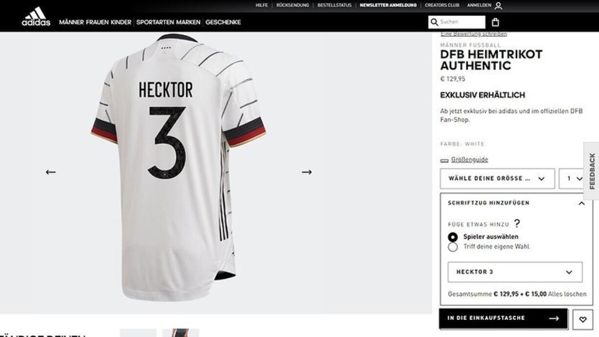 De Feeler ass dann och de Responsabele vum DFB a vun Adidas opgefall an esou kréien d’Fans elo en Trikot vum “Hector” oder dem “Waldschmidt”.