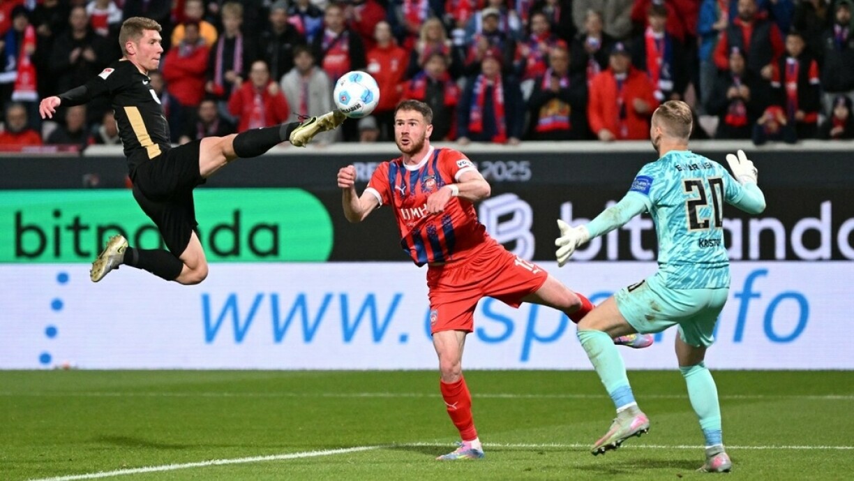 Ëmmer nees huet et Heidenheim an de Strofraum vum Géigner gepackt, krut de Ball awer net an d’Netz. An Elversberg, mam Lëtzebuerger Raphael Duarte als Co-Trainer, huet keng Geleeënheet verpasst a krut tatsächlech nach virun der Hallschent op en 2:0 duerch den Asllani erhéicht. Och an der Nospillzäit konnt Heidenheim net méi vill ëmrappen. Eng Golchance aus spatzem Wénkel war ze zentral placéiert a konnt vum Kristof gehale ginn. Den Treffer aus dem lénken Eck duerch den Traoré (45' +3), no enger laanger flaacher Pass aus dem Mëttelfeld duerch de Krätzig, gouf nodréiglech iwwerpréift a wéinst enger Abseitspositioun vum Pieringer ofgewisen.