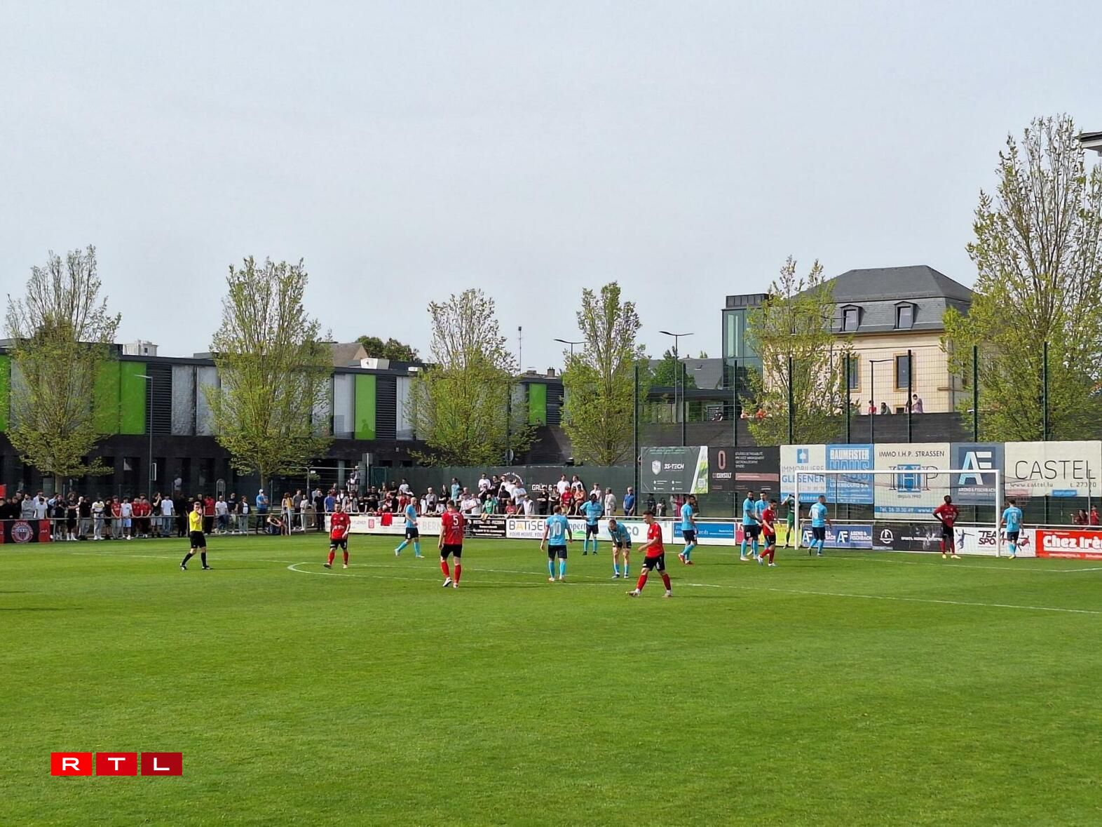 E Mëttwoch stoungen am nationale Futtball béid 1/2-Finallen an der Coupe de Luxembourg um Programm. Mëttes konnt sech Hesper mat engem 2:0-Succès zu Stroossen eng Plaz an der Finall sécheren. Do geet et géint de Progrès Nidderkuer, dee sech genau sou mat 2:0 zu Munneref behaapt huet.