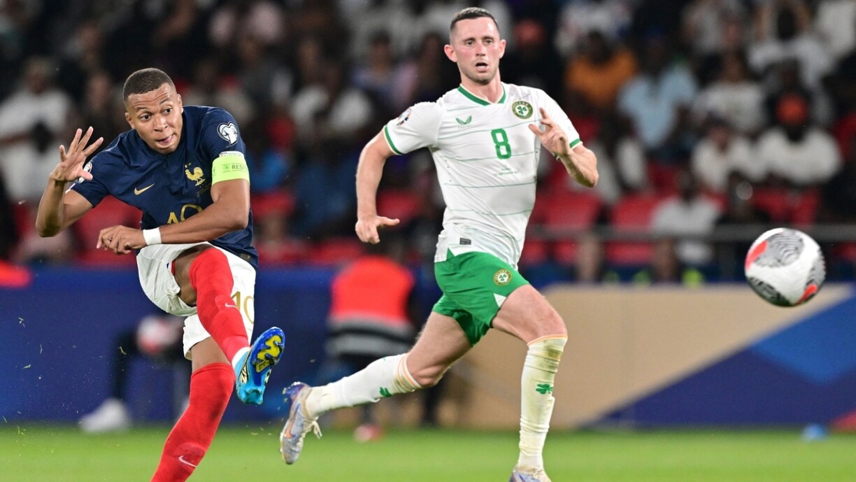 Relativ fréi hunn sech eis franséisch Noperen géint Irland konnte behaapten, sou dass an der 19. Minutt schonn den 1:0 gefall ass, dat no engem Gol vum Tchouameni, dee vum Mbappé zerwéiert gouf. Kuerz no der Paus, an der 48. Minutt, war et den Thuram mat engem Rietsschoss, dee fir den 2:0 gesuergt huet. Bei deem Resultat ass en dann zum Schluss och bliwwen.