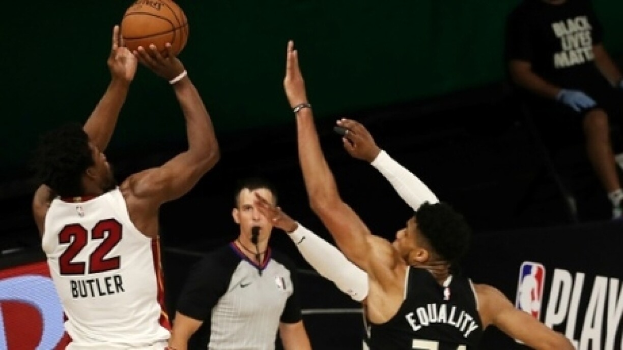 Nodeems d’Bucks laang hanne ware konnte si 3 Fauten mam Khris Middleton (23 Punkten, 8 Assists) eraschéissen a sou op 114:114 zeréckkommen, mat nach 4,3 Sekonnen ze spillen. D’Faute vum Dragic op de Middleton war net evident, mä den Dragic (23 Punkten) war nach am Mouvement, wéi hien den Middleton ze pake krut. Wéi et zu der leschter Aktioun koum, wollt den Jimmy Butler (13 Punkten) de Buzzer-Beater schéissen, wéi de Giannis Antetokounmpo (29 Punkten, 14 Rebounds) hie beim Schoss beréiert huet a soumat Feeler gepaff gouf. De Butler konnt seng Fauten eraschéissen a soumat steet Miami 2-0 vir géint d’Milwaukee Bucks, déi als ee vun de Favoritte gëllen, fir d’Finals ze gewannen dëst Joer.