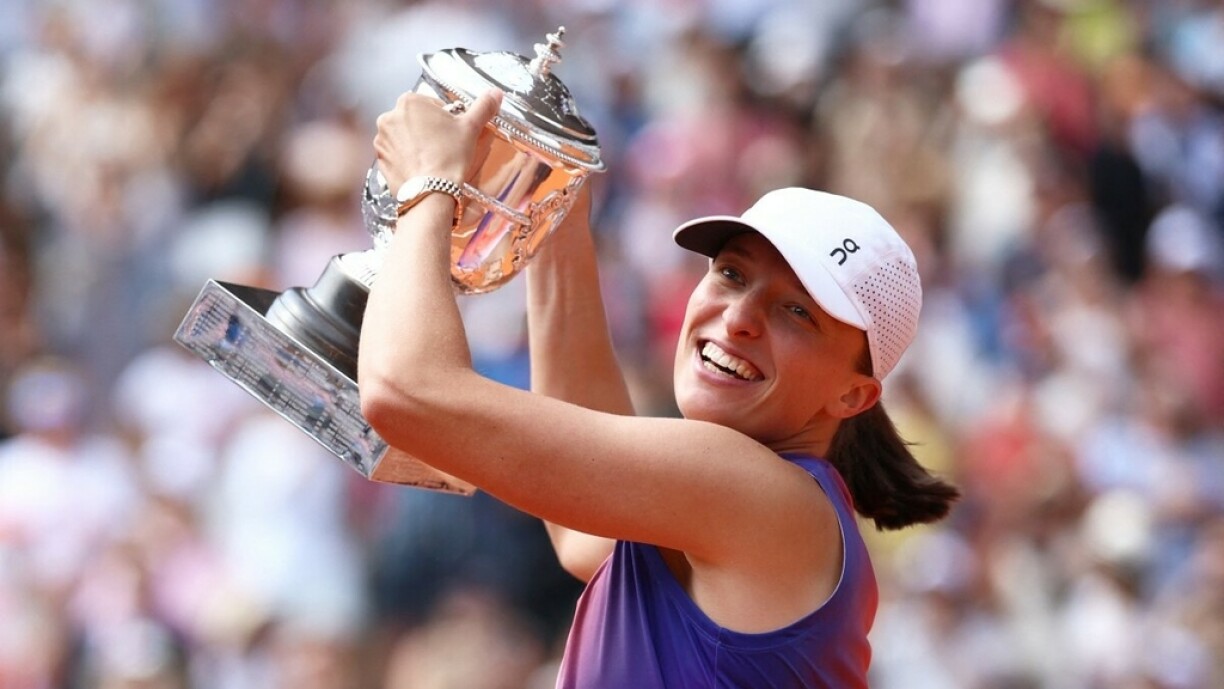 D’Iga Swiatek setzt sech an der Finall vu Roland Garros kloer an zwee Sätz (6:2, 6:1) géint d’Italieenerin Jasmine Paolini duerch. Fir d’Polin, déi och op der éischter Plaz an der Weltranglëscht steet, ass et déi véiert Victoire op Sand zu Paräis (2020, 2022, 2023), an déi drëtt hannerteneen.