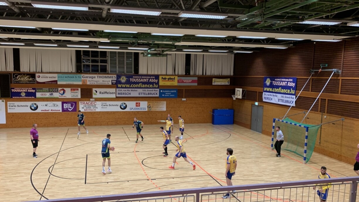 An der leschter Partie vun dësem Spilldag haten déi MierscherKäerjeng op Besuch. Eng 20 Minutte konnt d’Heemekipp mathalen ma dono huet Käerjeng aus engem 13:11 bis zur Paus en 21:13 gemaach. An der zweeter Hallschent hu si dunn net méi genau mat deem selwechten Tempo wéi déi lescht 10 Minutte virum Téi weidergespillt, konnten hir Avance awer nach liicht ausbauen. Zum Schluss spréngt en 37:25 eraus.