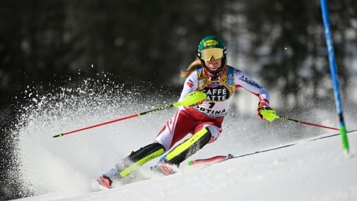Am éischten Duerchgang war et eng souverän Performance vum Katharina Liensberger. D’Éisträicherin hat nom 1. Laf 30 Honnertstel Avance op d’Petra Vlhova an 1 Minutt a 24 Honnertstel Virsprong op d’Wendy Holdener. D’Mikaela Shiffrin hat schonns e Retard vun 1 Sekonn an 30 Honnertstel.
