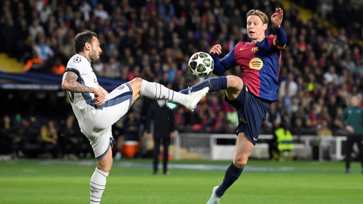 30 Sekonnen huet et zu Barcelona gedauert, bis de Ball eng éischte Kéier am Gol louch. No enger Flank vum Denzel Dumfries huet de Marcus Thuram artistesch mat der Hack aus kuerzer Distanz op 1:0 gestallt an d’Katalanen domadder fréi geschockt. Obwuel d’Lokalekipp sech direkt ëm eng Reaktioun beméit huet, ass Inter Mailand 20 Minutte méi spéit en zweete Gol gelongen. Mat engem héije Volleyschoss war et dës Kéier den Denzel Dumfries, deen e Corner perfekt verwäerte konnt, sou datt et scho fréi 2:0 fir d’Gäscht stoung. Trotz den zwee Géigegoler huet Barcelona awer säi Match weidergemaach. Si hu weider no vir gespillt a goufen an der 24. Minutt dann och fir hir Beméiunge belount. De 17 Joer ale Lamine Yamal huet an enger Eenzelaktioun d’Géigespiller stoe gelooss a mat engem prezise Schoss an de laangen Eck op 1:2 verkierzt. D’Haushäre waren elo kloer déi besser Ekipp um Terrain an hunn no enger Rei weiderer Chancen nach virun der Paus ausgeglach. Dës Kéier huet de Raphinha de Ball mam Kapp op de Ferran Torres ofgeluecht, deen de Ball aus kuerzer Distanz hannert d’Linn drécke konnt. Eng héich interessant éischt Hallschent ass sou mat engem Chancëplus fir Barcelona mat 2:2 op en Enn gaangen.